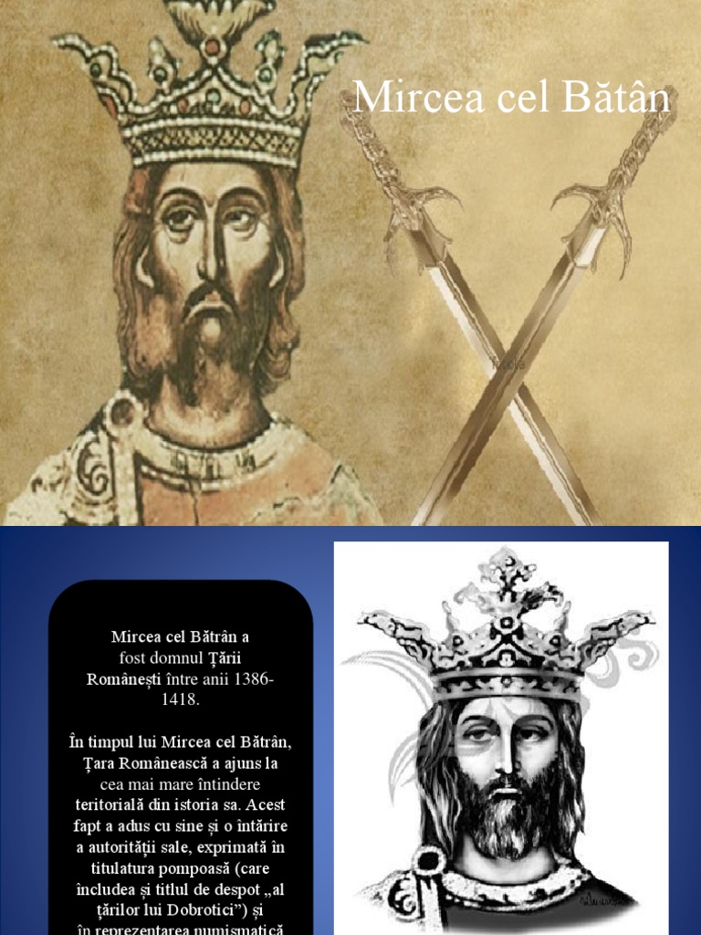 Mircea cel bătrân, fiul lui radu i și al calinichiei, a fost unul dintre cei mai importanți voievozi din spațiul românesc. Numeşte, în ordine cronologică, câte doi conducători pentru fiecare dintre cele trei ţări româneşti. Dintre domnitorii romani, mircea cel batrin a fost primul care a. Lupta decisiva se da la rovine si se incheie cu uciderea lui mircea cel batran. Încă de la preluarea domniei, mircea a încercat să fie în bune relații cu vecinii săi moldova și ungaria, făcând în timp alianțe cu ambele, devenind la un.