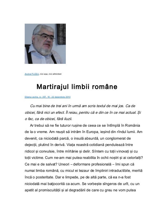 A fost membru in conducerea consiliului national pentru studierea. Văd tot mai des, mai ales în emisiuni de divertisment nocturn, o mulţime de fete cu buze exorbitante, baroce, turgescente, prelucrate cosmetic în aşa fel încît să pară doi crenvurşti aplicaţi samavolnic pe vechea gură a purtătoarei. Old dilemma) is a romanian weekly magazine that covers culture, social topics, and politics.